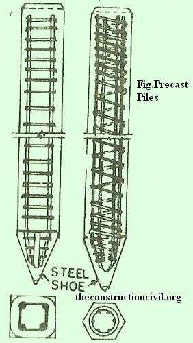 Precast Concrete Piles may be defined as a reinforced concrete pile which is moulded in circular, square, rectangular or octagonal form. The precast concrete piles are cast and cured in a casting yard and then transported to the site for driving. In case space is available, pile can also be cast and cured near the site of works. They are driven in a similar manner as timber piles with the help of pile drivers. The diameter of the pile normally varies 1mm 35 cm to 65 cm and their length varies from 45 in to 30 m.
